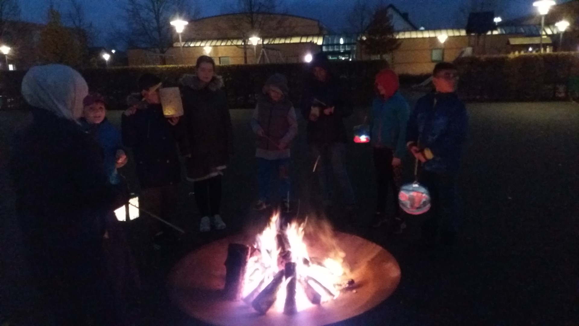 Als Erstes trafen wir uns im Speisesaal zwei. Dort haben wir Laternenlieder gesungen. Danach sind wir zum Martinsfeuer gegangen. Dort haben wir auch Lieder gesungen und sind dann in den Bungalow gegangen.