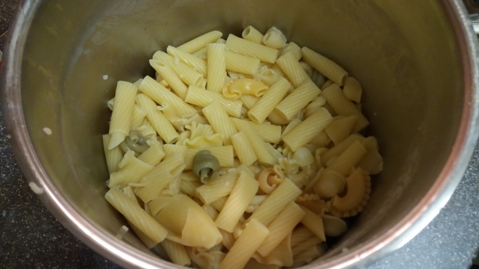 Nachdem wir die Nudelsuppe gegessen haben, haben wir noch zwei Pastatöpfe gemacht. Darin waren kurze Pasta und lange Pasta. In der langen Pasta befanden sich Bavette, Capellini, Fussili lunghi bucati, Reginette und Maccaroni. Im Topf mit den kurzen Pastas waren Conchiglioni, Farfalle, Tortiglioni, Conchiglie, Tacconi, Cresce di Gallo, Gigli, Penne rigate und Penne lisce und Trottole.