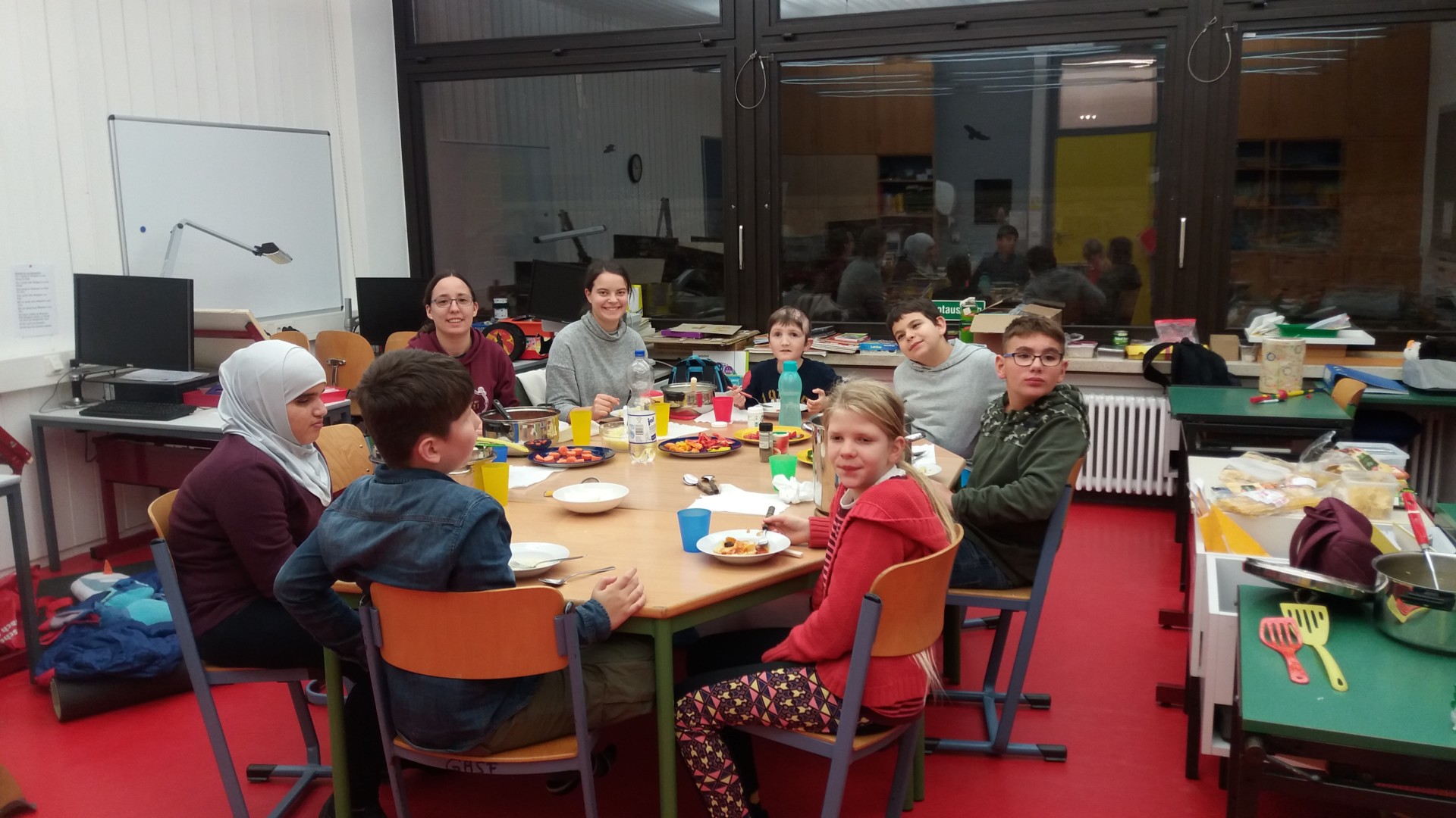 Jetzt sind alle Nudeln gegessen und im Klassenzimmer ist endlich wieder Platz! 😉