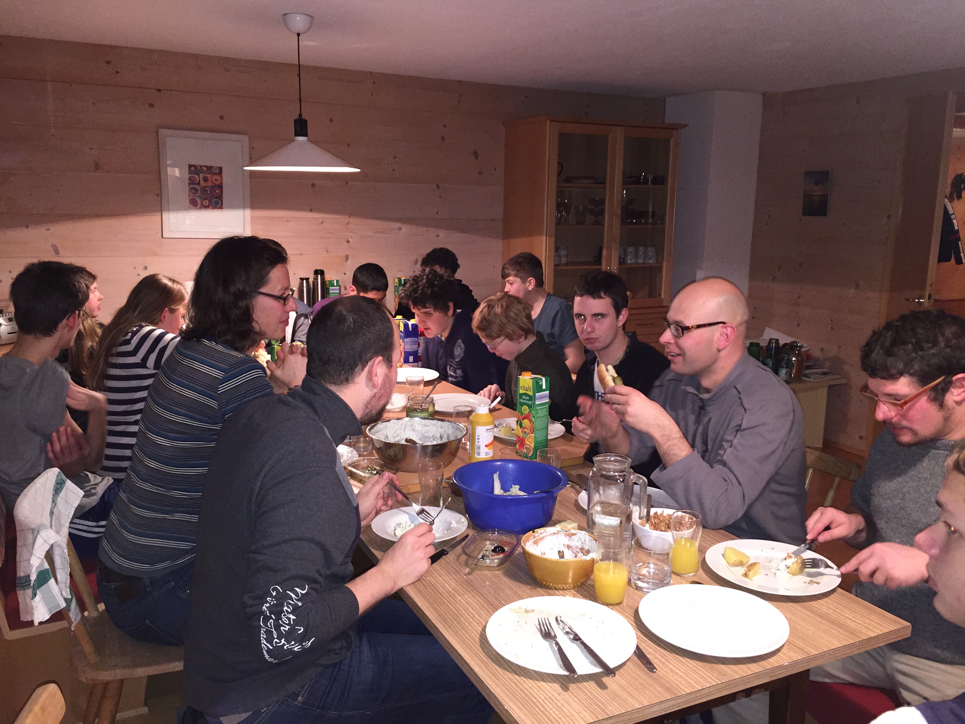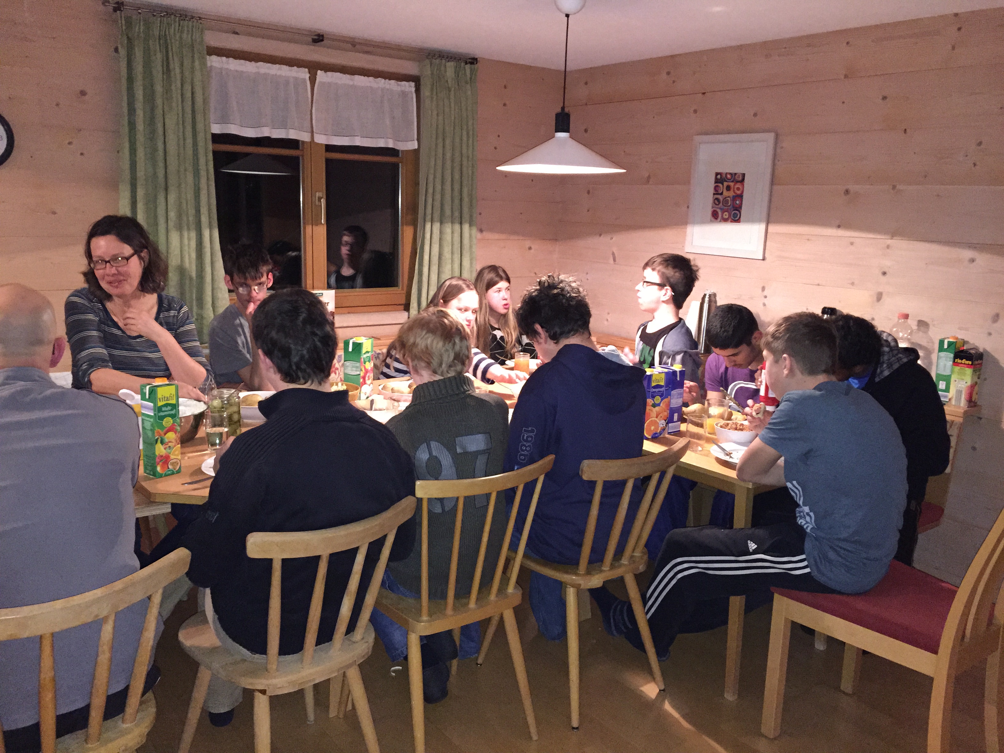 In diesen sechs Tagen haben wir in einem kleinen Ort namens Andelsbuch in Vorarlberg (Österreich) gewohnt. Nach unserer Ankunft am Montag wurde zunächst der Küchendienst eingeteilt und wir haben uns die Skiausrüstung angeschaut und anprobiert. Am Montagabend gab es Fleischkäse mit Bratkartoffeln. Anschließend hatten wir Freizeit.