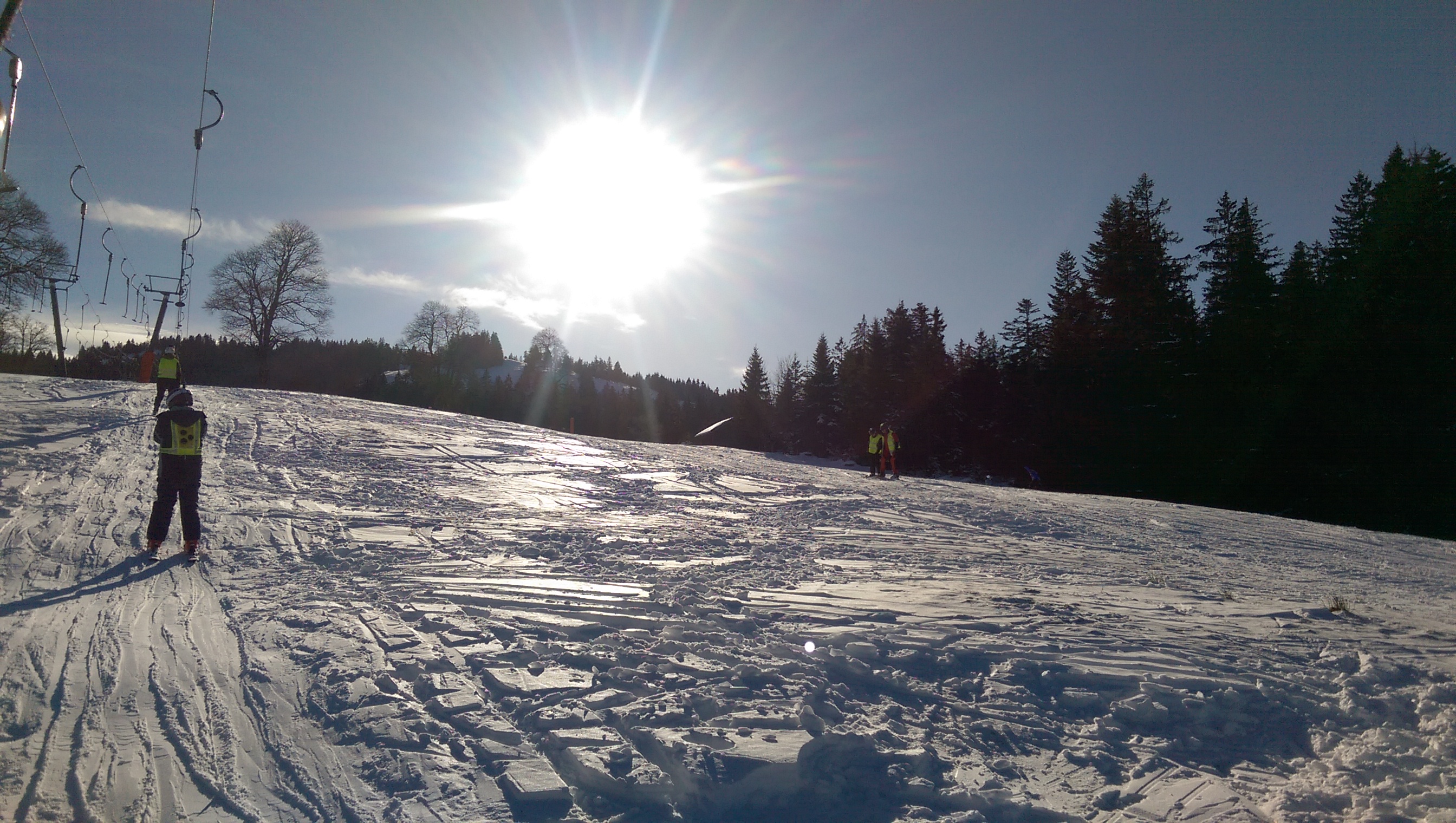 Der Dienstag verlief so ab: Als erstes gab es Frühstück und danach haben wir uns direkt fertig gemacht fürs Skifahren. Wir sind zum Bödele gefahren. Alle Schüler sind auf Anfängerpisten Ski gefahren um die ersten Kurven, das Bremens und das Liften mit dem Tellerlift zu üben. Am frühen Abend sind wir zurückgekehrt und zwei Schüler haben angefangen mit dem Küchendienst. So um 19.00 Uhr gab es Abendessen. Diesmal gab es Spaghetti mit Sauce Bolognese und Tomatensoße. Der Rest des Tages war frei.