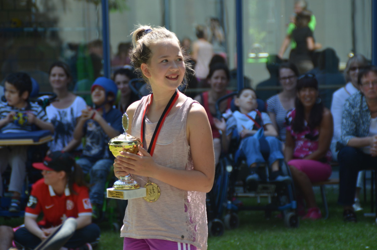 Nachdem es die ganze Zeit sehr regnerisch war, konnte am 9. Juni bei strahlendem Sonnenschein das Sportfest gemeinsam mit der Spaßolympiade der Schloss-Schule stattfinden.