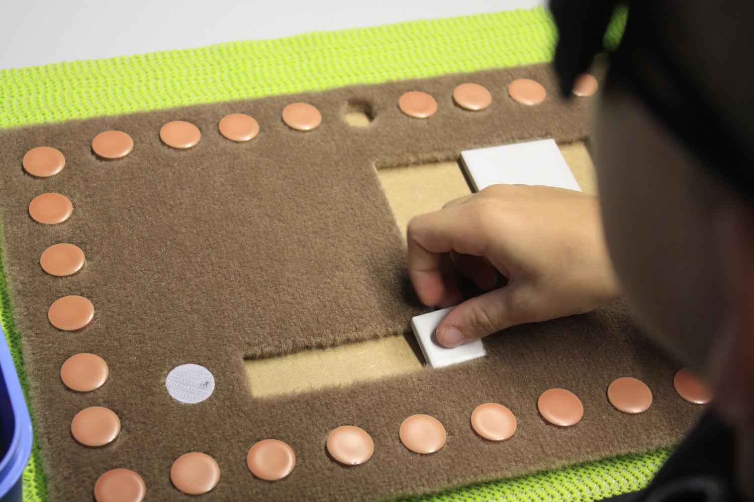 Zudem gab es unter anderem eine Kletter-Station, bei der man eine Sprossenwand erklimmen und oben herunterrutschen konnte, eine Sprungstation, wo man auf einen Kasten klettert und von dort aus auf eine dicke Matte springt und vieles mehr. So konnten die normalerweise sehenden Schüler erfahren, wie es ist, an einem fremden Ort zu sein,
