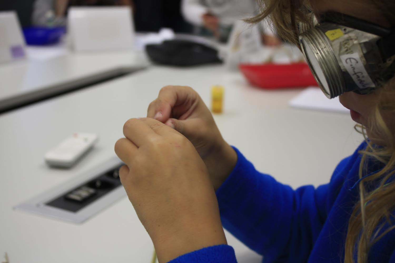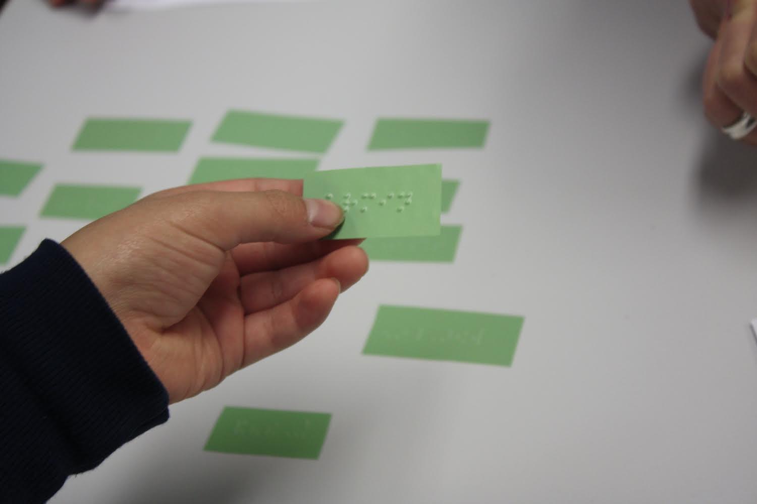 Am Tag des Weißen Stocks 14.10.2015 besuchten 2 Klassen der Friedrich-Ebert-Schule die Schloss-Schule. Die Drittklässler durften an diesem Vormittag an drei Stationen erfahren, wie die Schüler der Schloss-Schule Ilvesheim arbeiten. Sie lernten, wie es ist, Braille-Buchstaben mit den Fingerspitzen zu erfühlen und durften nach ihrem Vornamen in Brailleschrift suchen. Beim zusammen Spielen war alles plötzlich sehr mühsam, besonders die anderen Kinder am Tisch wahrzunehmen, weil das Tasten schon so anstrengend war. Mit Simulationsbrillen erlebten sie, welche einfachen Tätigkeiten mit einer Sehbehinderung beim Ausschneiden, Kleben und Schreiben plötzlich doch ganz schön schwierig zu bewältigen sind.
