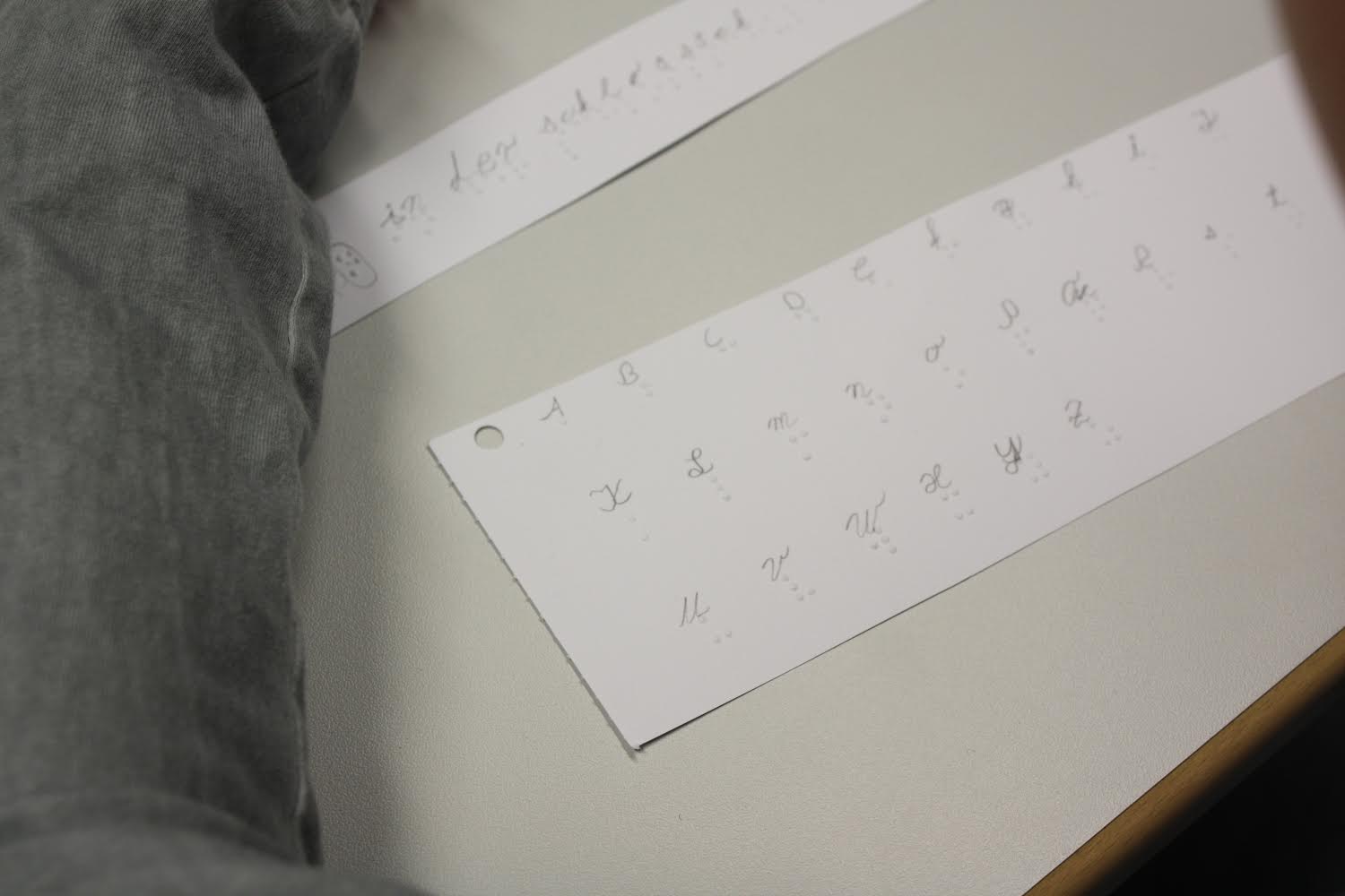 Am Tag des Weißen Stocks 14.10.2015 besuchten 2 Klassen der Friedrich-Ebert-Schule die Schloss-Schule. Die Drittklässler durften an diesem Vormittag an drei Stationen erfahren, wie die Schüler der Schloss-Schule Ilvesheim arbeiten. Sie lernten, wie es ist, Braille-Buchstaben mit den Fingerspitzen zu erfühlen und durften nach ihrem Vornamen in Brailleschrift suchen. Beim zusammen Spielen war alles plötzlich sehr mühsam, besonders die anderen Kinder am Tisch wahrzunehmen, weil das Tasten schon so anstrengend war. Mit Simulationsbrillen erlebten sie, welche einfachen Tätigkeiten mit einer Sehbehinderung beim Ausschneiden, Kleben und Schreiben plötzlich doch ganz schön schwierig zu bewältigen sind.