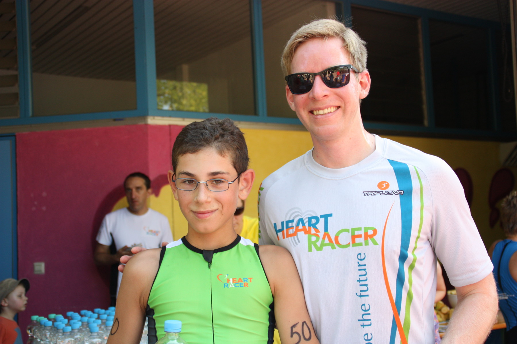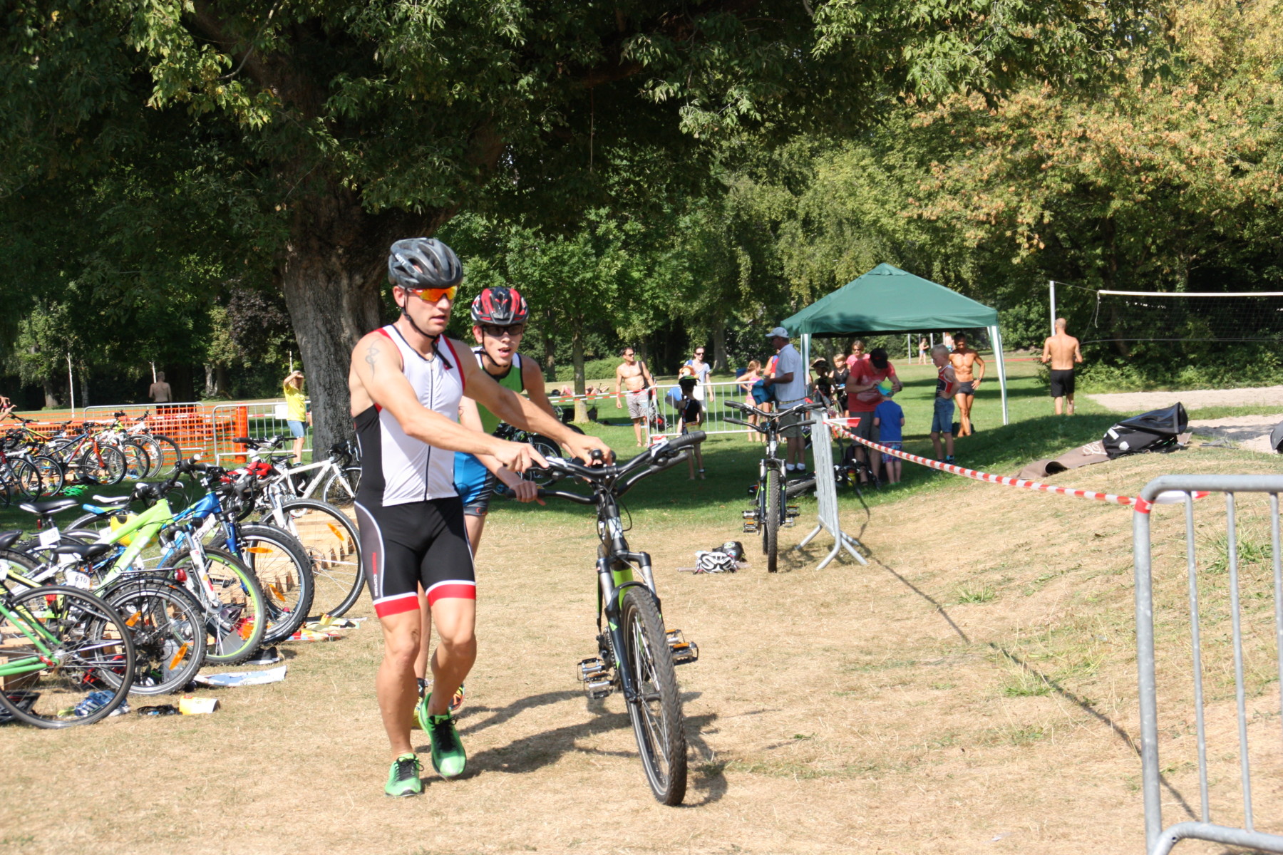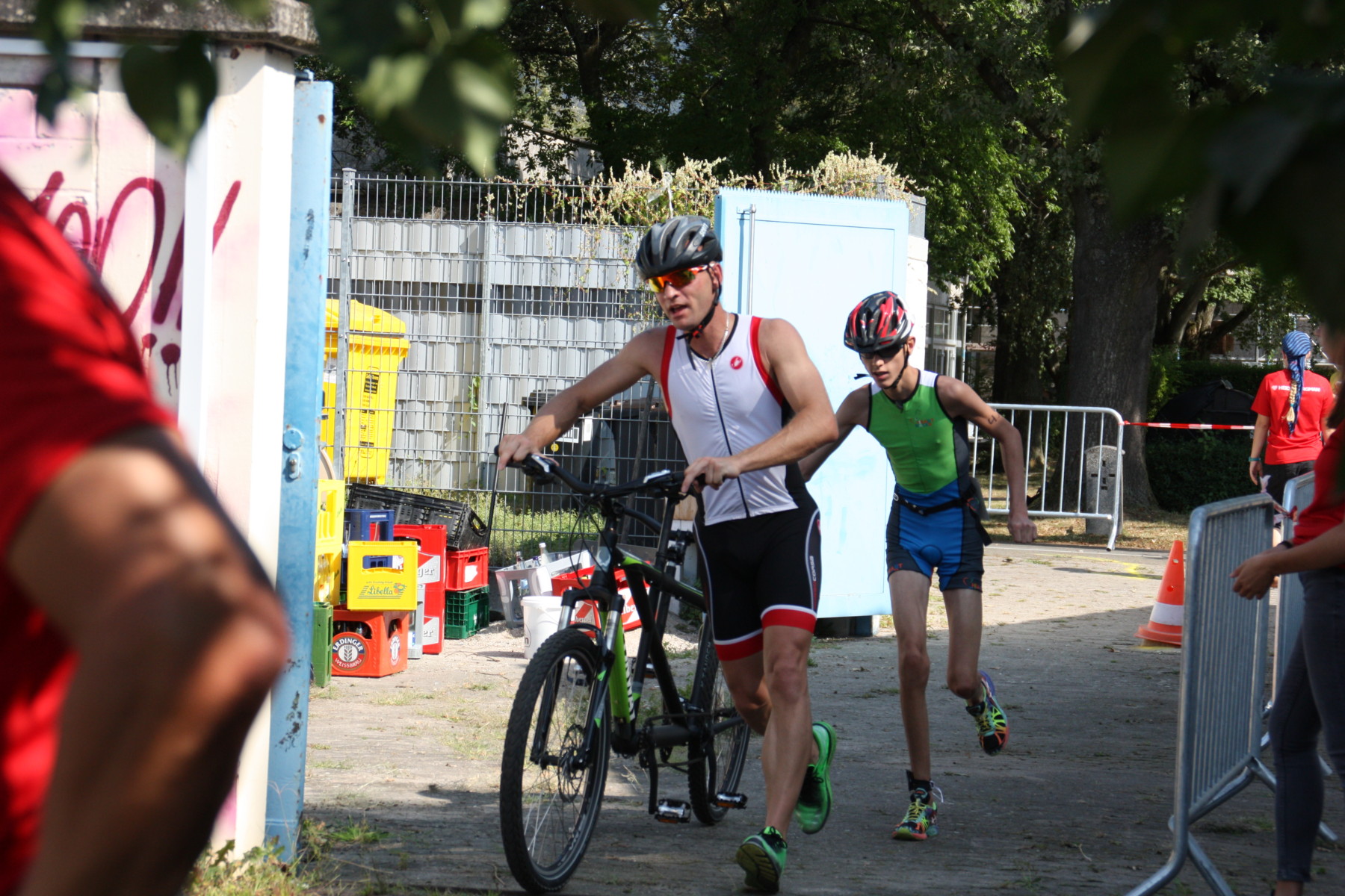 Im Anschluss an die Jugend B startete Jan, momentan unser jüngster Triathlet, in der Altersklasse Schüler A. Nach 100 Metern Schwimmen, 6 km auf dem Rad und 1,4 km Laufen erreichte Jan als 19. von 41 das Ziel! Da hat sich das Schwimmtraining gelohnt! Auch Guide Fabian war mit einer Gesamtzeit von 26 Minuten und 11 Sekunden mehr als zufrieden!