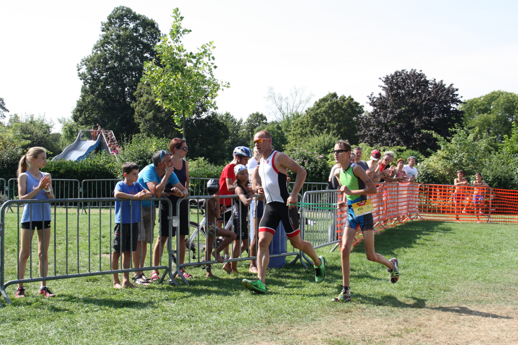 Im Anschluss an die Jugend B startete Jan, momentan unser jüngster Triathlet, in der Altersklasse Schüler A. Nach 100 Metern Schwimmen, 6 km auf dem Rad und 1,4 km Laufen erreichte Jan als 19. von 41 das Ziel! Da hat sich das Schwimmtraining gelohnt! Auch Guide Fabian war mit einer Gesamtzeit von 26 Minuten und 11 Sekunden mehr als zufrieden!