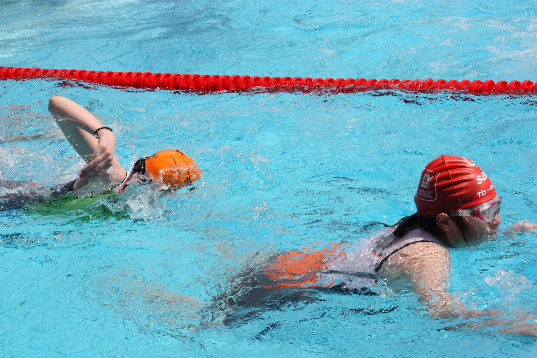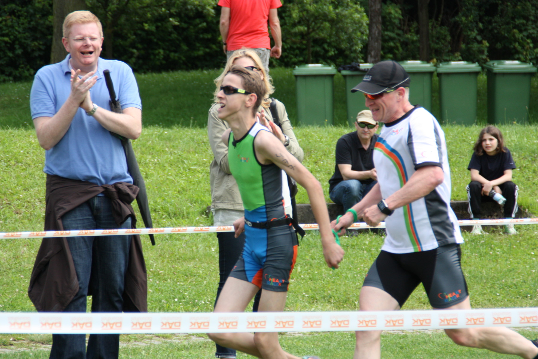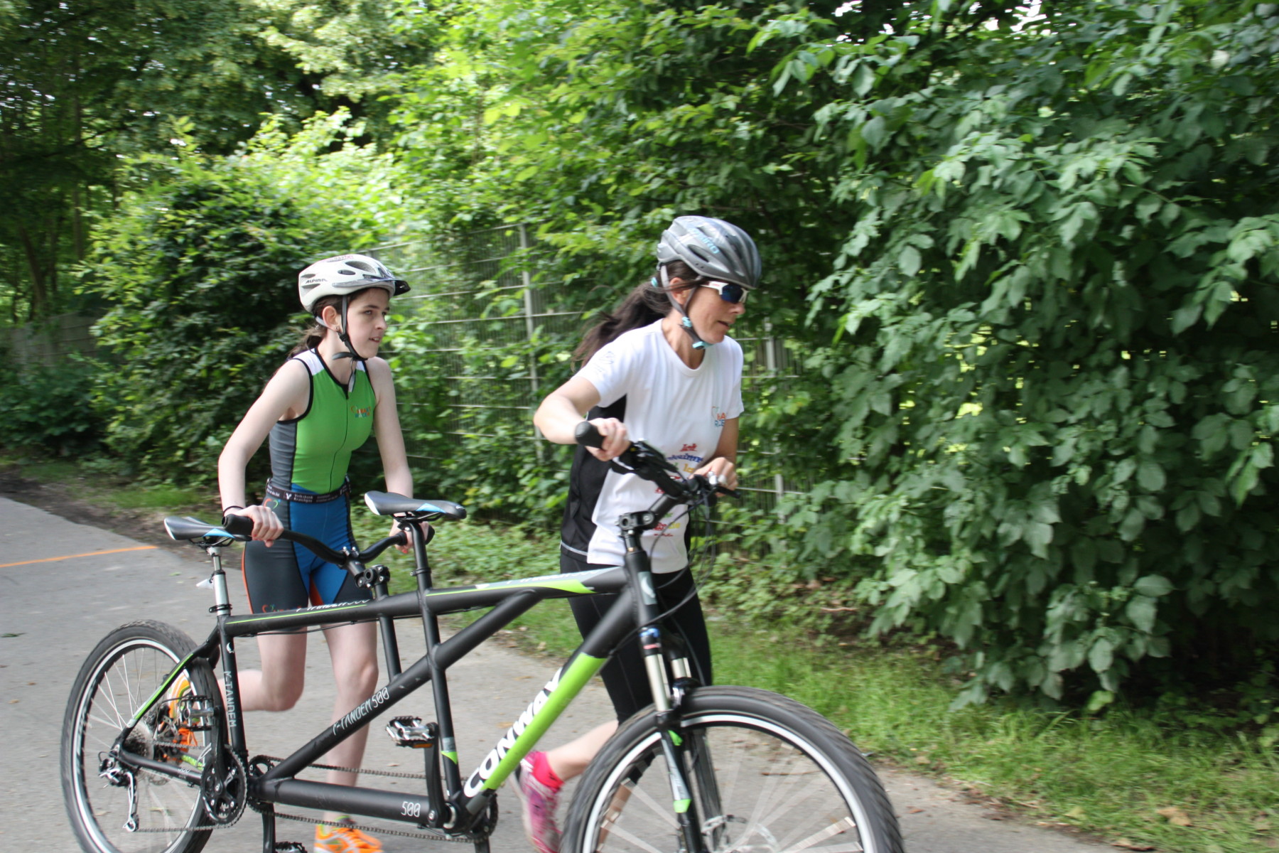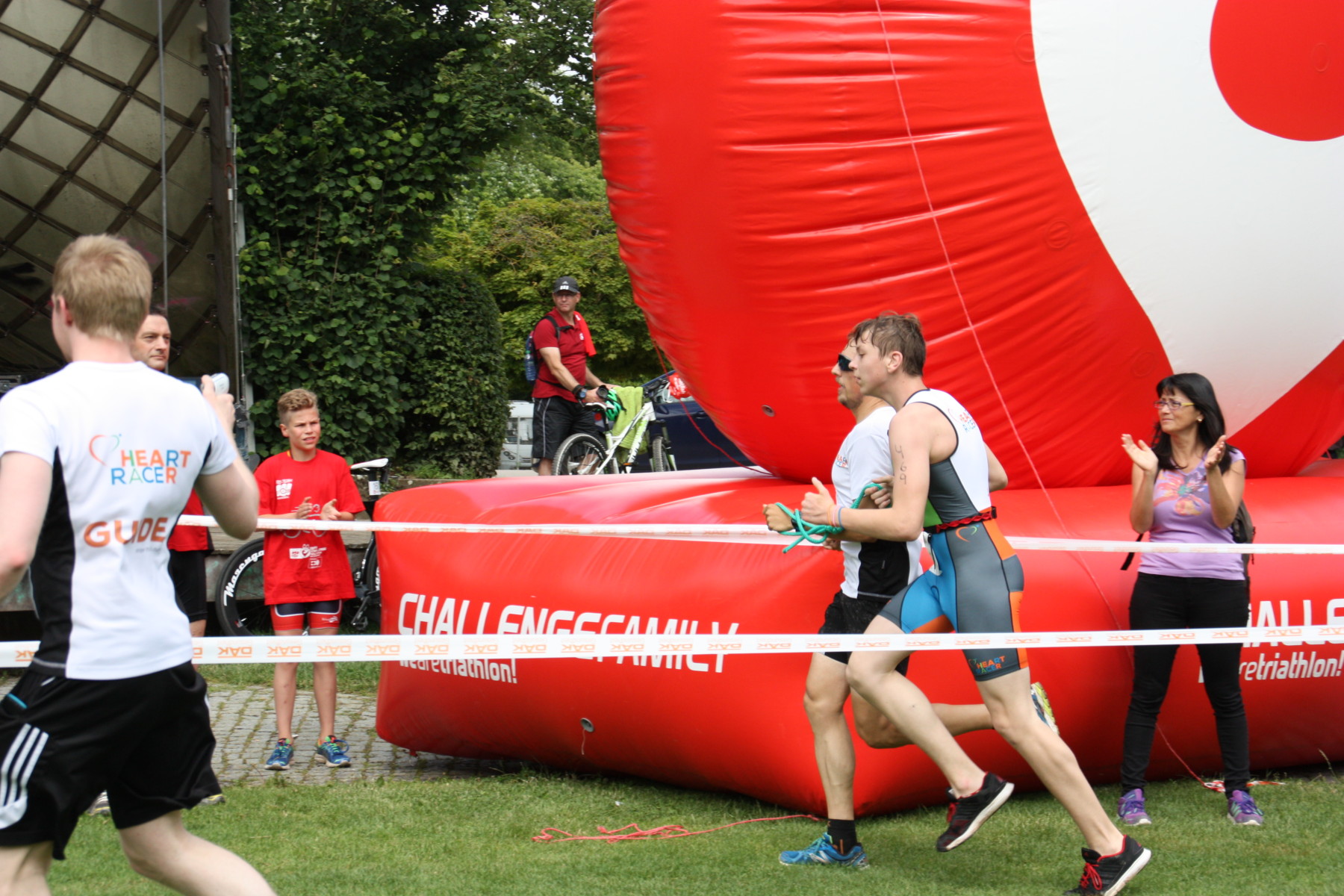 Unsere anderen Triathleten starteten alle in der ältesten Klasse, was 200 Meter Schwimmen, 8000 Meter auf dem Tandem und 2200 Meter zu Fuß bedeuteten. Bei Daniel zeigte sich, dass sich das zwischenzeitlich jahrelange Kraultraining auszeichnete. Unterstützt von seinem Guide Patrick kam er als erster unserer Triathleten aus dem Wasser und als Achter in seiner Altersklasse vom Rad. Beim Laufen konnten er keine Plätze mehr gewinnen, erreichte aber mit einer Gesamtzeit von 29:04 Minuten den 12. Platz. Auch bei Lasse zeigten sich deutliche Fortschritte beim Schwimmen und auch das intensive Lauftraining zeigte Wirkung! Mit einer Gesamtzeit von 32:03 Minuten erreichte er mit seinem Guide Robert Platz 19!