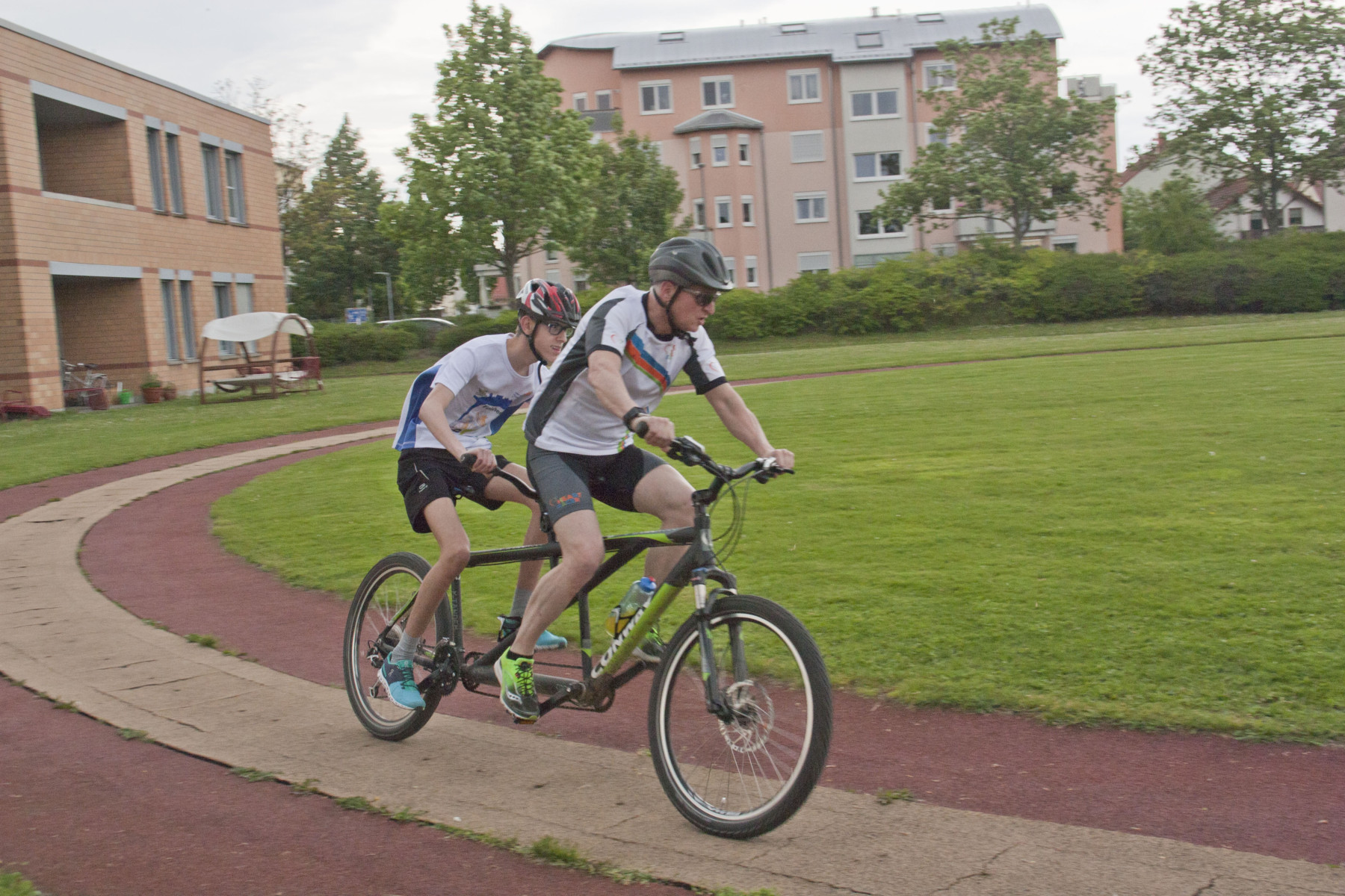 Eingespieltes Team Lasse mit seinem Guide Robert auf dem Tandem