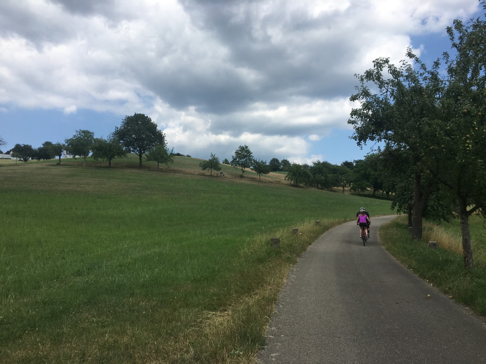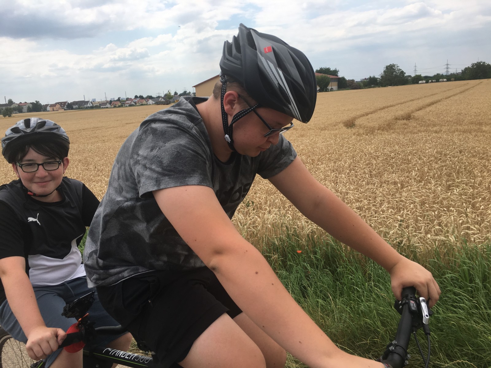 Nach einem ganz normalen Schultag trudelten nach und nach alle im Kurshaus ein und bezogen ihre Zimmer, bevor wir gegen 13.45 Uhr zum Fahrradschuppen aufbrachen, um die Tandems auf die entsprechenden Fahrer einzustellen. Zudem machte jedes Fahrergespann eine Testfahrt auf dem Gelände. Als alle Tandems startbereit und alle Fahrer organisiert waren, brachen wir bei bestem Wetter auf. Ein Teilnehmer, der beim ersten Wochenende schon als Pilot, also als Fahrer, der auf dem Tandem vorne fährt, mitfuhr, hatte sich gewünscht, nochmal den Apfelbaumweg zu fahren und das taten wir auch. Dar Apfelbaumweg ist ein Weg, der von Hohensachsen (Stadtteil von Weinheim) kommend leicht bergauf führt. Da manche regelmäßig Tandem fahlen, während es für andere das erste Mal war, änderten wir für dieses Abschnitt die Fahrgespanne und wechselten teilweise auch auf ein anderes Tandem. Es war deutlich spürbar, wie alle, egal wie erfahren oder trainiert sie waren, ihr Bestes gaben und dass man auf einem Tandem nur gemeinsam ans Ziel kommt. Erschöpft, aber zufrieden kamen wir oben an, wo wir an einem Brunnen unsere Flaschen auffüllen und uns mit Fruchtriegeln stärken konnten. Die folgende Abfahrt führte uns zur sogenannten Ursenbacher Höhe, von wo aus wir nach Schriesheim fuhren. Von dort aus ging es wieder nach Ilvesheim zurück, wobei wir in Ladenburg nochmal einen großen Stopp machten. Wir überraschten einen Lehrer, an dessen Wohnung wir zufällig vorbeikamen, drehten eine Runde durch die historische Altstadt und gönnten uns dort ein Eis. Wieder in Ilvesheim, gingen wir duschen, deckten draußen den Tisch und freuten uns über die Ankunft der weiblichen Betreuerin Kathrin und die Pizzen, die wir bestellt hatten. So ließen wir den Abend ganz gemütlich ausklingen, aßen Pizza, unterhielten uns und blieben bis etwa 23.30 Uhr draußen, bevor wir uns allmählich bettfertig machten.